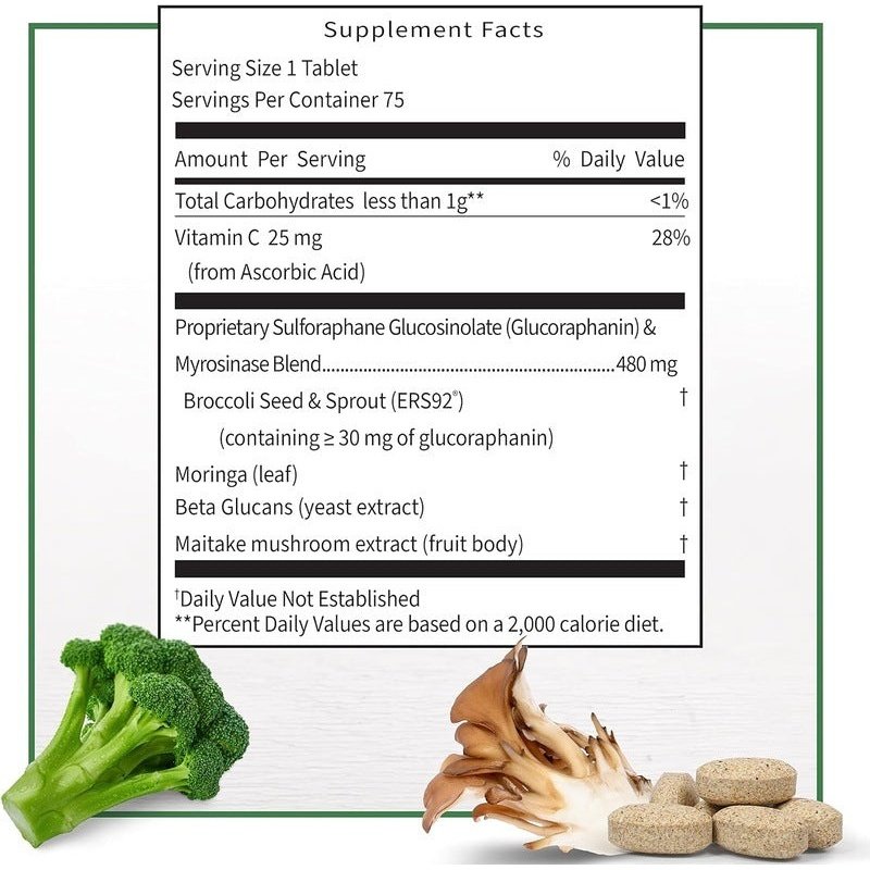 Avmacol® Extra Strength is a patented, sulforaphane-producing supplement that works in combination with Maitake mushroom extract (containing beta-glucans) to support your body's natural detoxification process better than sulforaphane alone.1 Avmacol® Extra Strength provides glucoraphanin, also known as sulforaphane glucosinolate, and active myrosinase enzyme, which are the essential ingredients needed for sulforaphane production. Without active myrosinase enzyme, one may not be able to reap sulforaphane’s many health-promoting benefits.