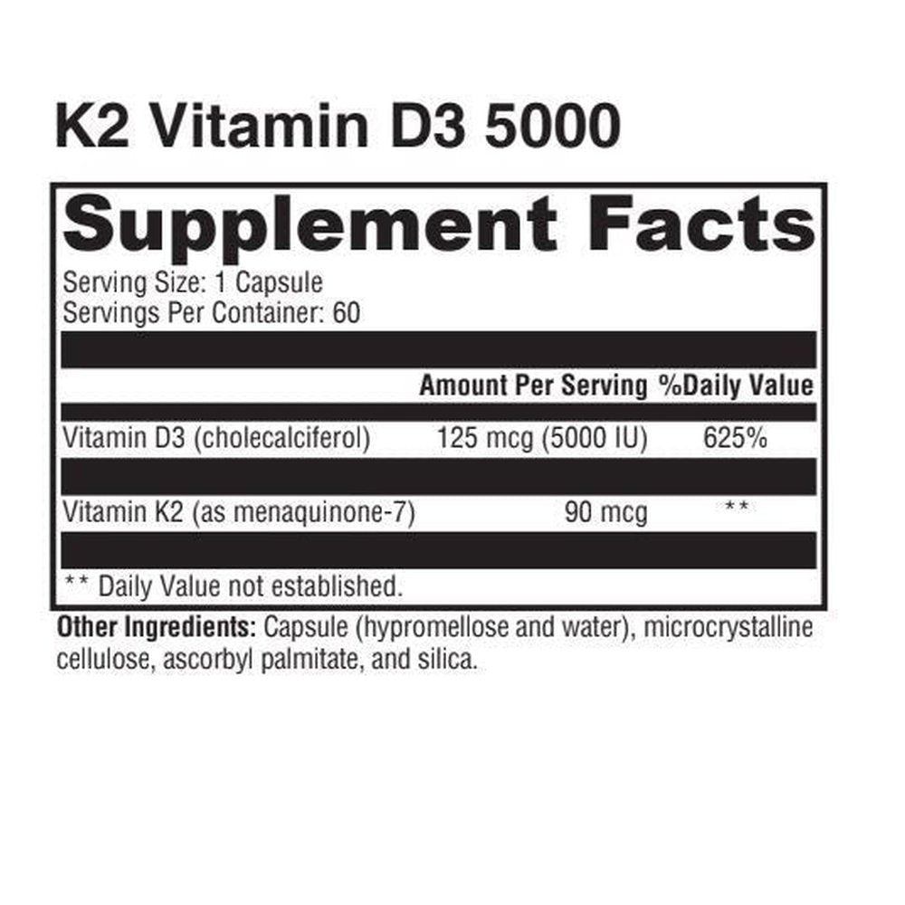 K2 Supreme, K2 Vitamin D3 10,000, and K2 Vitamin D3 5000 provide vitamin K2 as menaquinone-7 (MK-7),a highly bioavailable and bioactive form of K2. K2 Vitamin D3 also features vitamin D3 (cholecalciferol), the identical form in which vitamin D is derived in the body from cholesterol and synthesized by sunlight on the skin. Historical use and numerous studies have demonstrated the efficacy of vitamin K supplements for bone and cardiovascular health.*