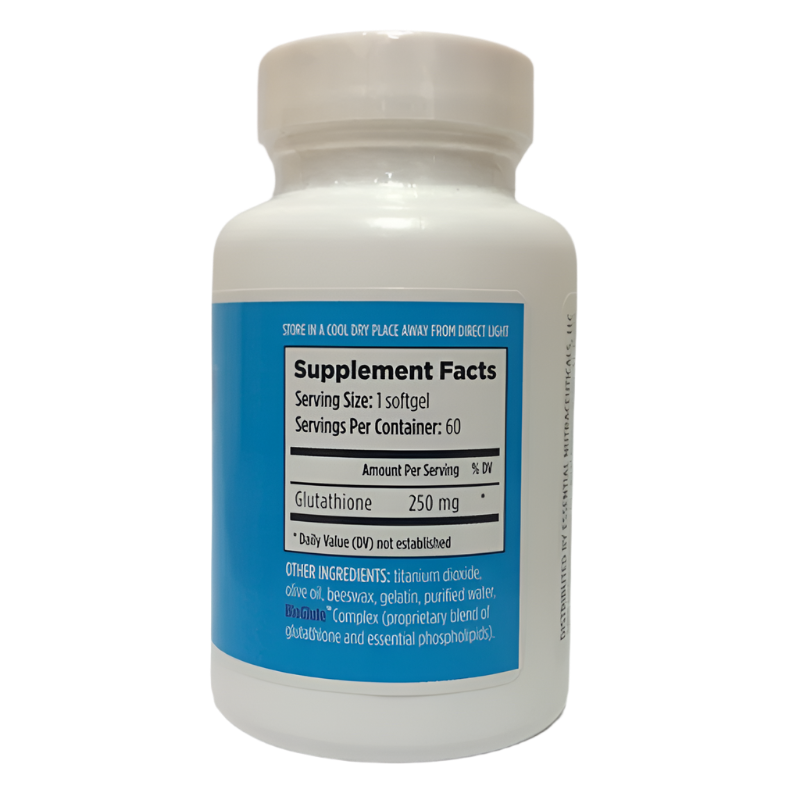 Essential Pro Glutathione is an advanced oral delivery system of reduced glutathione utilizing the power of the new BioGlute® Complex. Each softgel contains 250mg of reduced Glutathione.