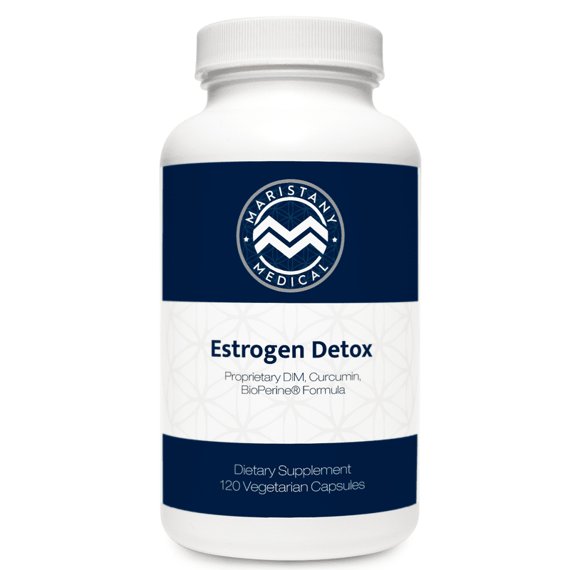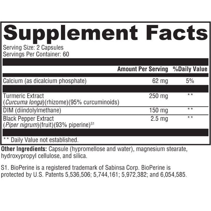 Estrogen Detox represents a three-dimensional approach to supporting healthy estrogen metabolism. Research suggests that diindolylmethane (DIM), curcumin (from turmeric extract), and the patented black pepper extract BioPerine® support balanced estrogen metabolism.*