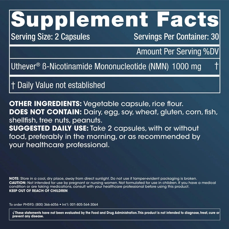 Supports Healthy Cognition: Declining cognitive function with age is related to a reduced NAD+ levels that impair mitochondrial function. Replenishing NAD+ stores through NMN may be able to prevent this dysfunction.