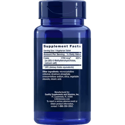 Maintaining normal levels of homocysteine, a metabolic byproduct, is associated with both cardiovascular and cognitive health. The B vitamin folate helps maintain already healthy homocysteine levels.* The RDA for folate for adults is 400 mcg a day. Our formula provides 1,700 mcg of folate in the form of L-Methylfolate.