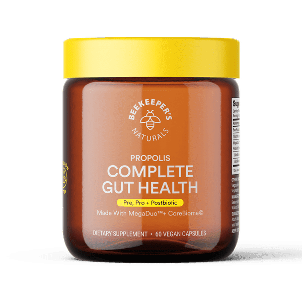 The world's first propolis-powered gut health capsule. B.Biome supports regularity and overall digestive balance with pre-, pro-, and postbiotics. Translation: Complete gut health. Bottled.