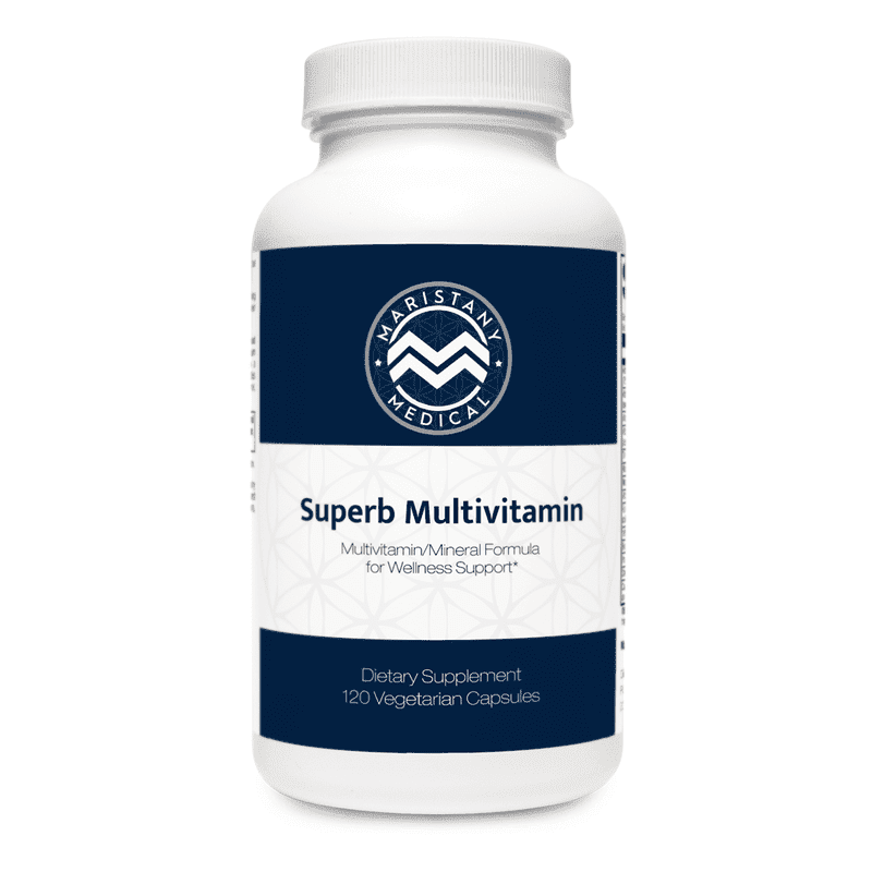 Superb Multivitamin features a premium, multivitamin/mineral blend of high-quality vitamin and mineral forms selected for optimum utilization. The comprehensive nutrient profile is delivered in a vegetarian capsule and supports foundational wellness; provides antioxidant activity with vitamins C and E, selenium, and beta-carotene; and supports detoxification.*