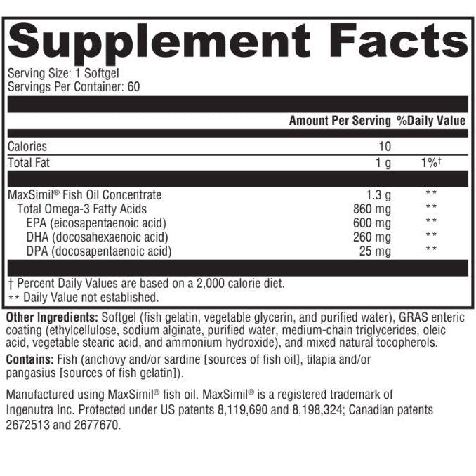 The Superior Fish Oil family of formulas feature MaxSimil® monoglyceride fish oil that has a three times greater EPA+DHA absorption rate than an equivalent dose of other leading fish oils. Through the use of MaxSimil patented lipid absorption enhancement technology (PLATform), the fish oil is absorption-ready and can be directly assimilated in the intestinal tract for maximum benefit.*