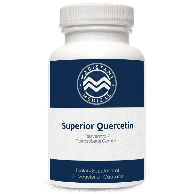 Superior Quercetin provides a complete bioflavonoid complex with resveratrol, quercetin, and pterostilbene. These three antioxidants work together synergistically. Pterostilbene, a new focus of scientific research, is methylated resveratrol, a bio-optimized form that complements resveratrol and quercetin. These compounds are being extensively studied in the areas of cardiovascular health and aging.